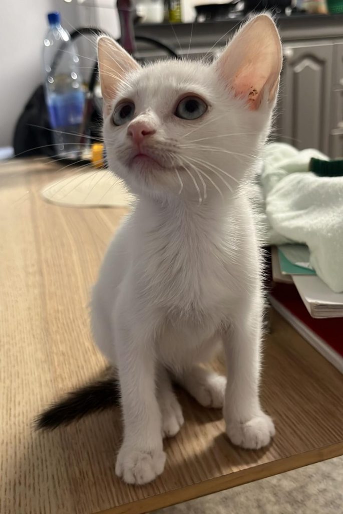 Esta preciosa gatita tiene fecha de nacimiento 24/06/25, y fue rescatada junto con sus hermanitos Ramón, Atún y Carmelo, que ya algunos han sido adoptados!