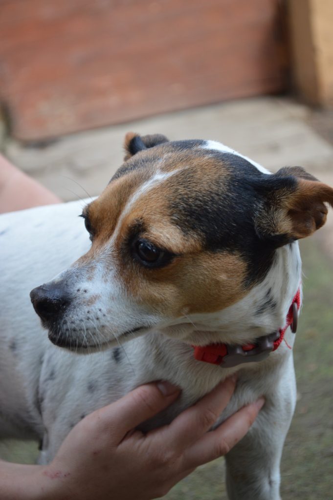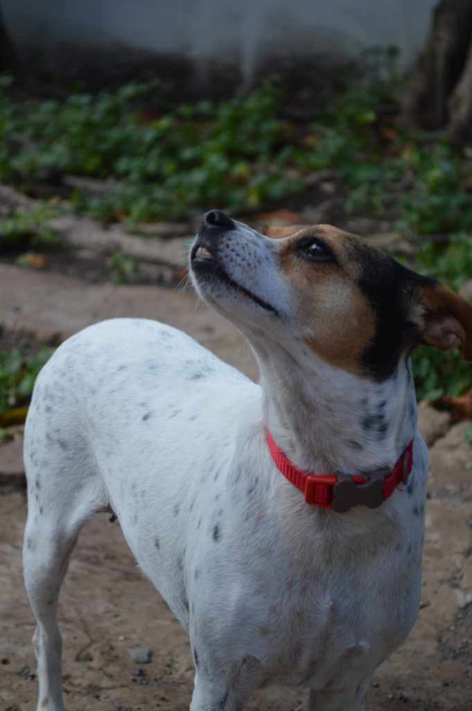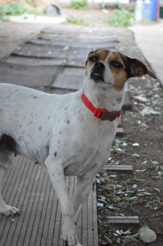 Vivía en una casita pero su familia no pudo seguir cuidándola y ahora vive en el refugio mientras espera a que llegue su hogar definitivo. Es de tamaño pequeño, tiene unos 4 añitos y es sociable con perros y gatos, y super cariñosa con humanos!