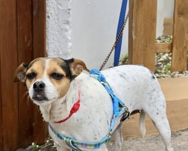 Tiene energía y le encanta salir a olisquear y pasear, pero le encanta también recibir mimos y disfrutar de cariñitos.